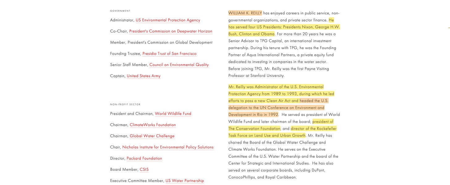 The Conservation Foundation was, as I’ve said before, nothing short of a Political Special Purpose Vehicle18 for the Rockefeller clan. They quite literally show up everywhere you look.
