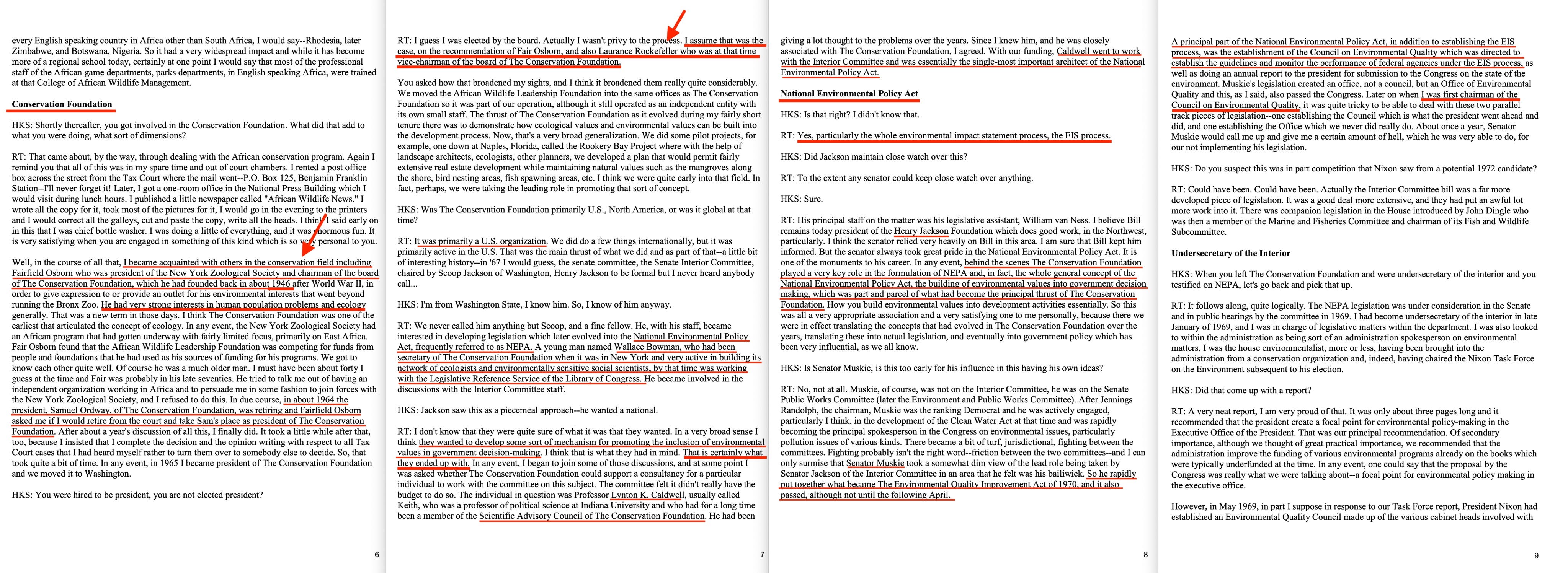 The individual in question was Professor Lynton K. Caldwell, usually called Keith, who was a professor of political science at Indiana University and who had for a long time been a member of the Scientific Advisory Council of The Conservation Foundation. He had been giving a lot thought to the problems over the years. Since I knew him, and he was closely associated with The Conservation Foundation, I agreed. With our funding, Caldwell went to work with the Interior Committee and was essentially the single-most important architect of the National Environmental Policy Act…