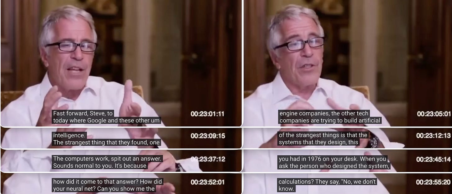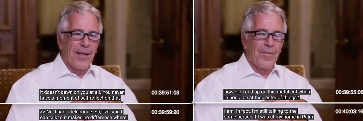 The key to the interview is not what Epstein says — it’s what he excludes.