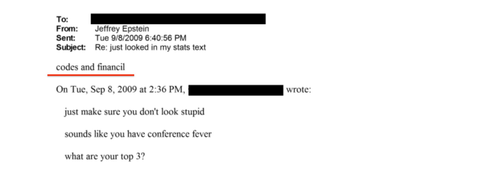 When asked to name his top priorities, Epstein replied with two words9: ‘codes and financil’.