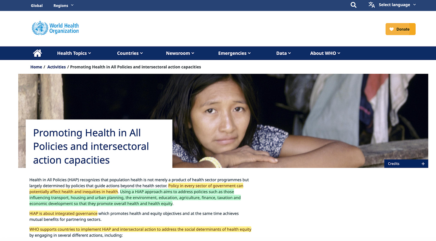 In brief — they took health, which is individual, and climate, which is collective — then inverted them: climate became individual through carbon allocations, while health became collective through a focus on determinants and opaque definitions of ‘well-being’.