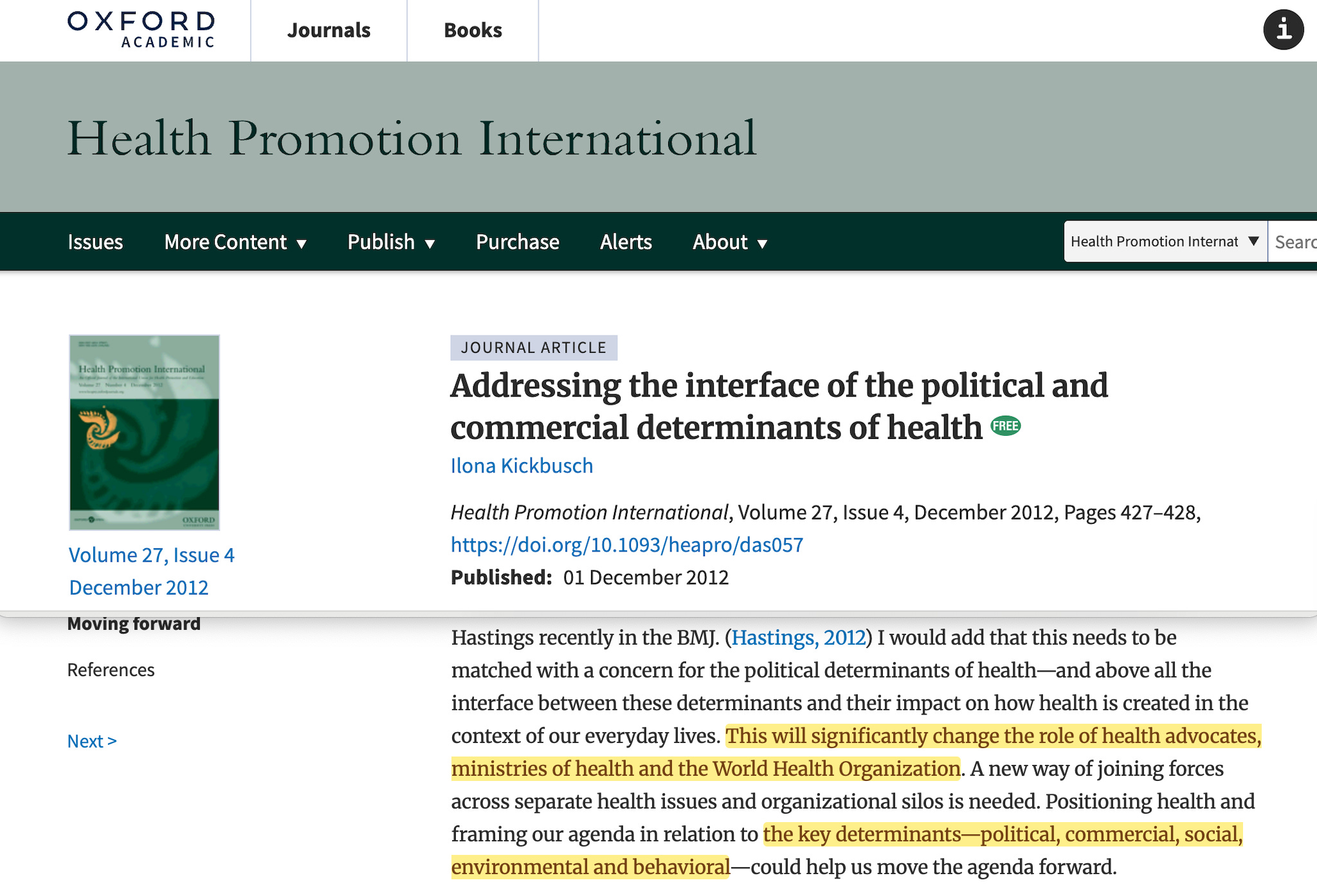 Economics → ‘commercial determinants’ requiring corporate health responsibility