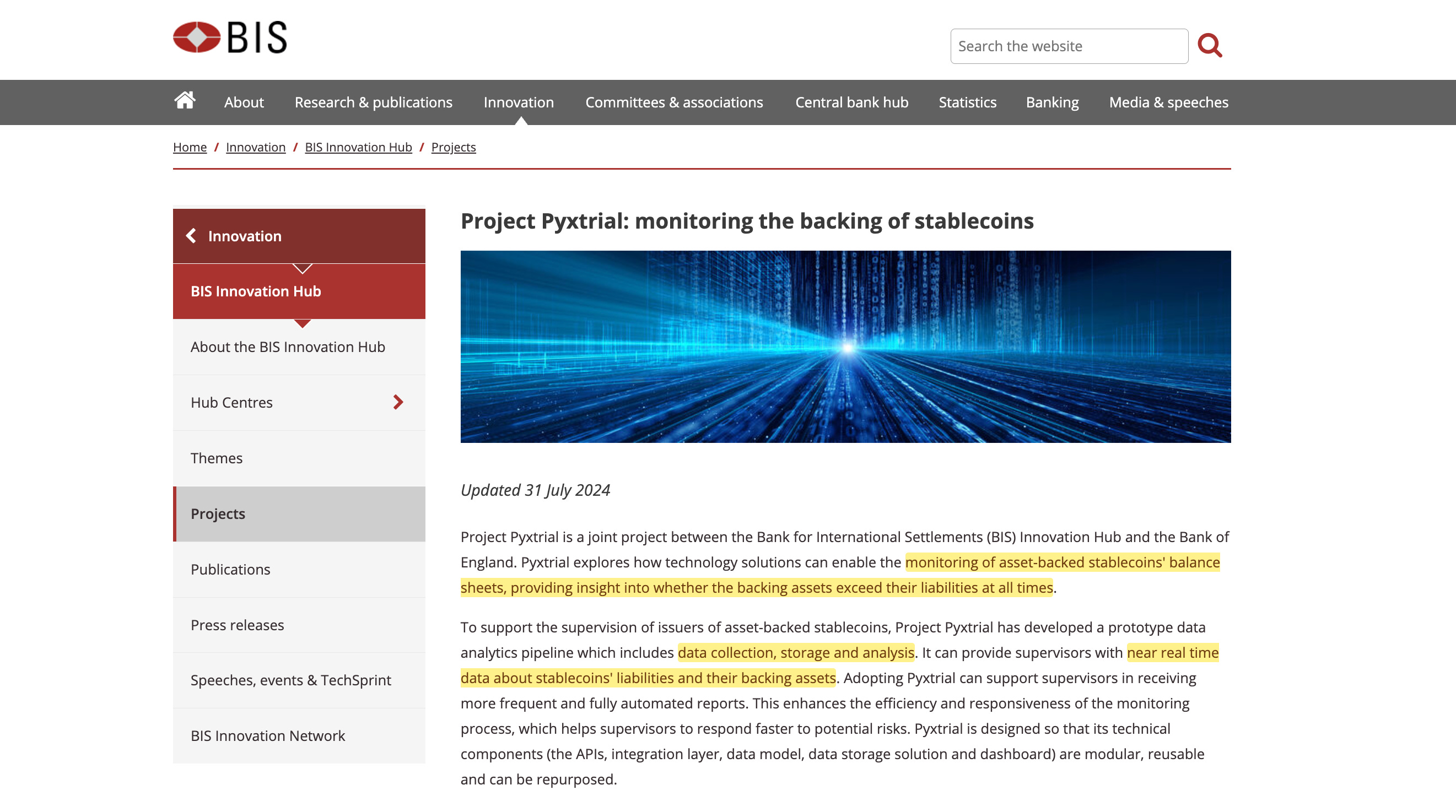 While Project Atlas watches the flows, Project Pyxtrial watches the backing36. Developed by the BIS Innovation Hub London Centre and the Bank of England, Pyxtrial creates a real-time data monitoring system for stablecoins.