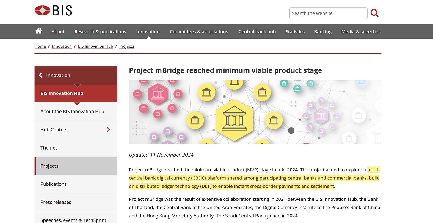 mBridge62 connects central bank digital currencies across Asia and the Middle East: China, UAE, Thailand, Hong Kong, Saudi Arabia. The platform incorporates ‘programmable safeguards’ where exchange-rate management and cross-border capital controls are ‘embedded as core design principles’.