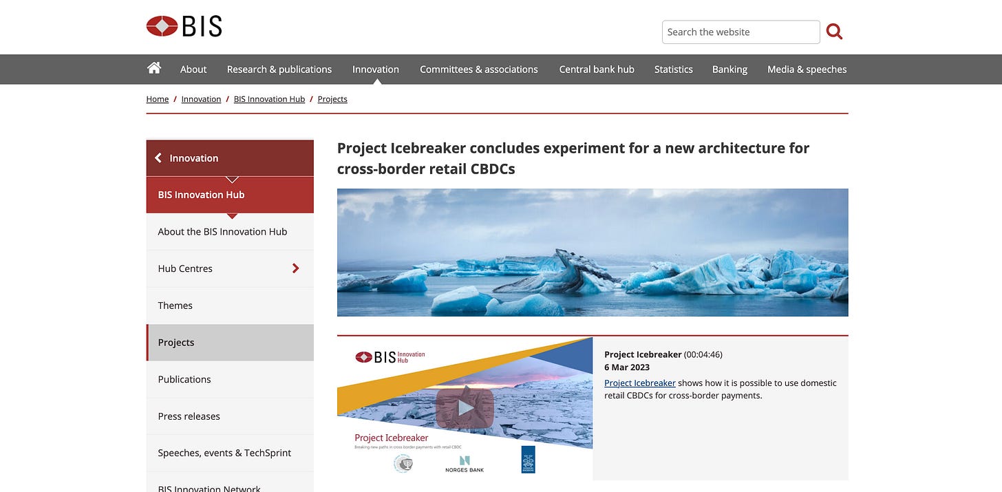 If mBridge is the wholesale pipeline, Project Icebreaker is the retail cage63. Developed with the central banks of Israel, Norway, and Sweden, Icebreaker tests a hub-and-spoke model for interconnecting retail central bank digital currencies.