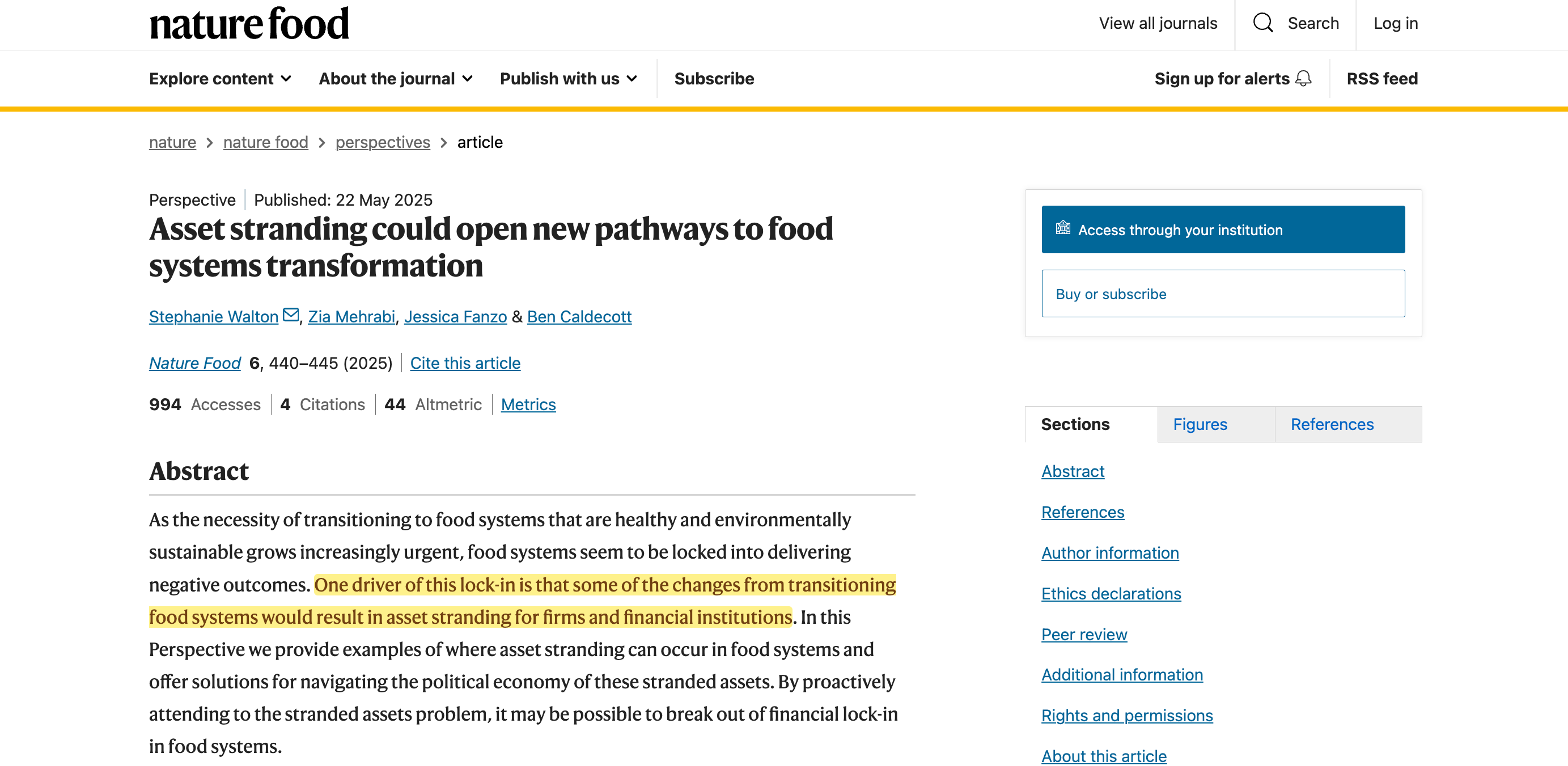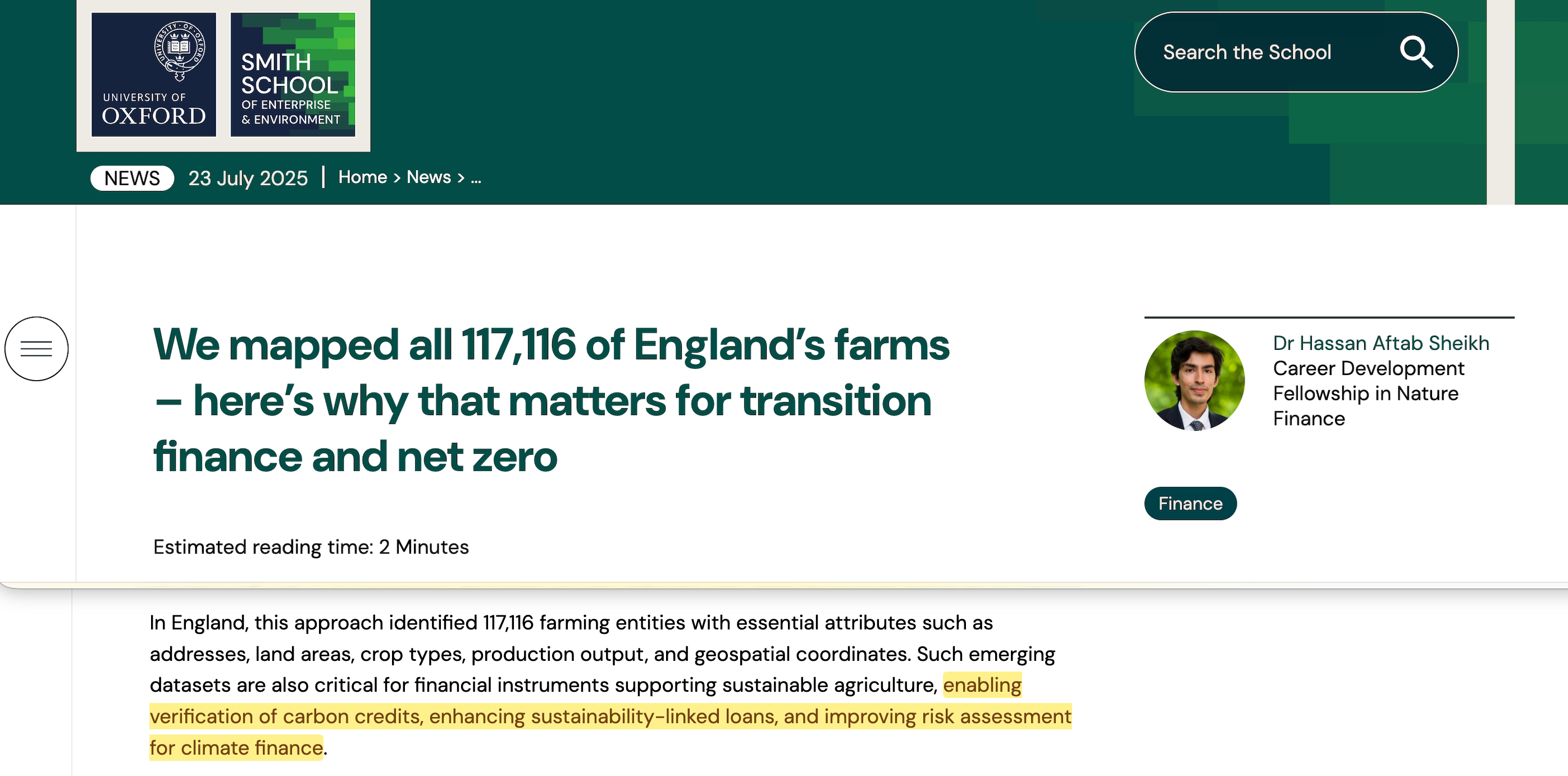 In May 2025, Nature Food published a paper by researchers including Ben Caldecott of the Oxford Smith School. The title was ‘Asset stranding could open new pathways to food systems transformation’67.