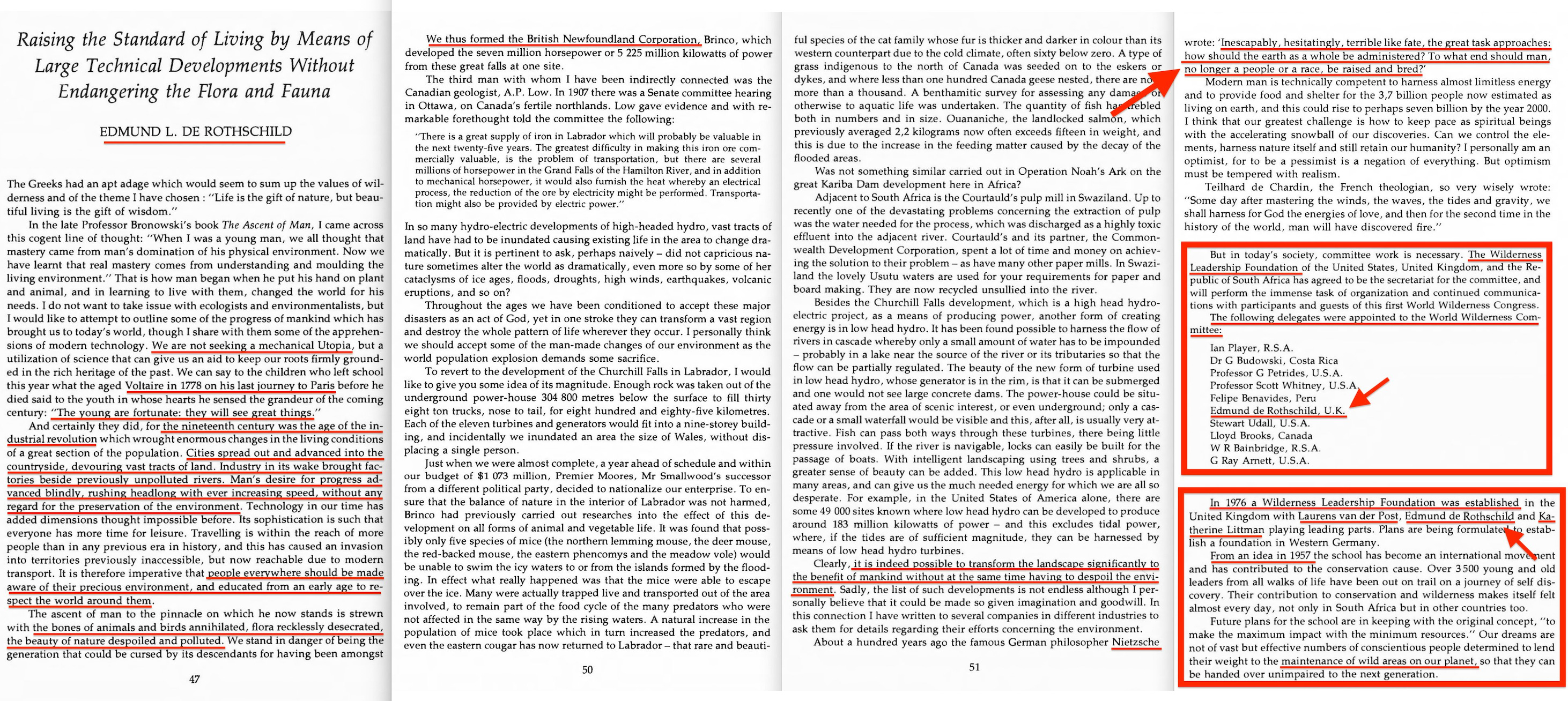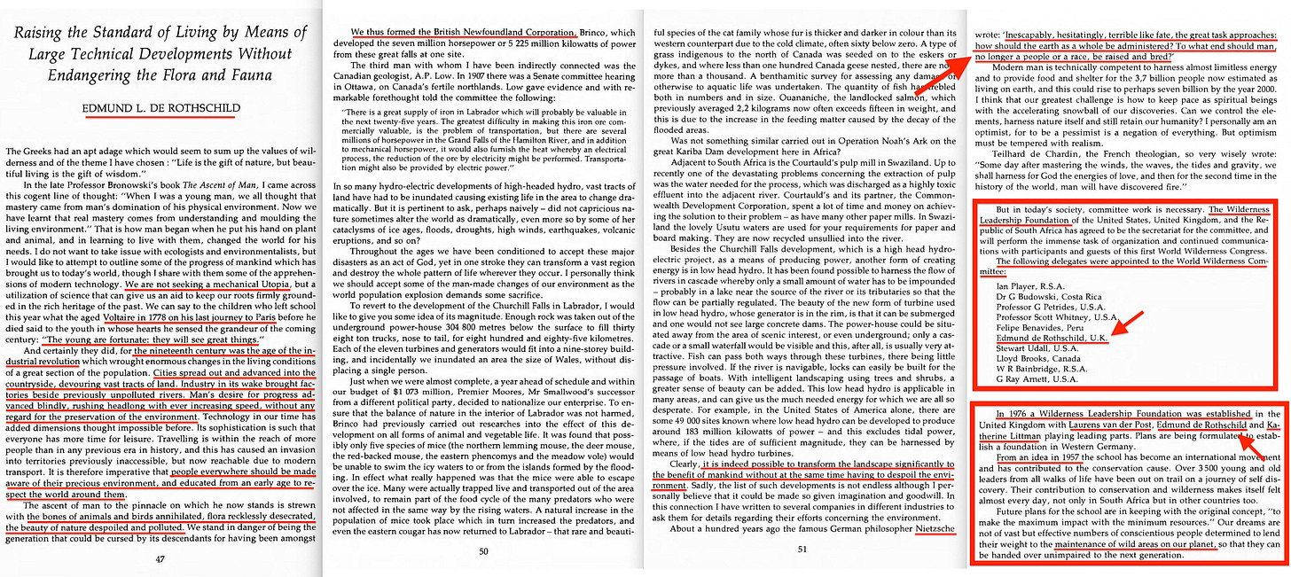 This convergence of the Mystical and the Financial has a specific birthdate. In 1977, at the first World Wilderness Congress75, Edmund de Rothschild stood on stage with the mystic Laurens van der Post (mentor to the future King Charles III76). Van der Post invoked Teilhard de Chardin to argue that the biosphere was the vessel of the global soul. Rothschild argued that this vessel must therefore be treated as 'Natural Capital'.