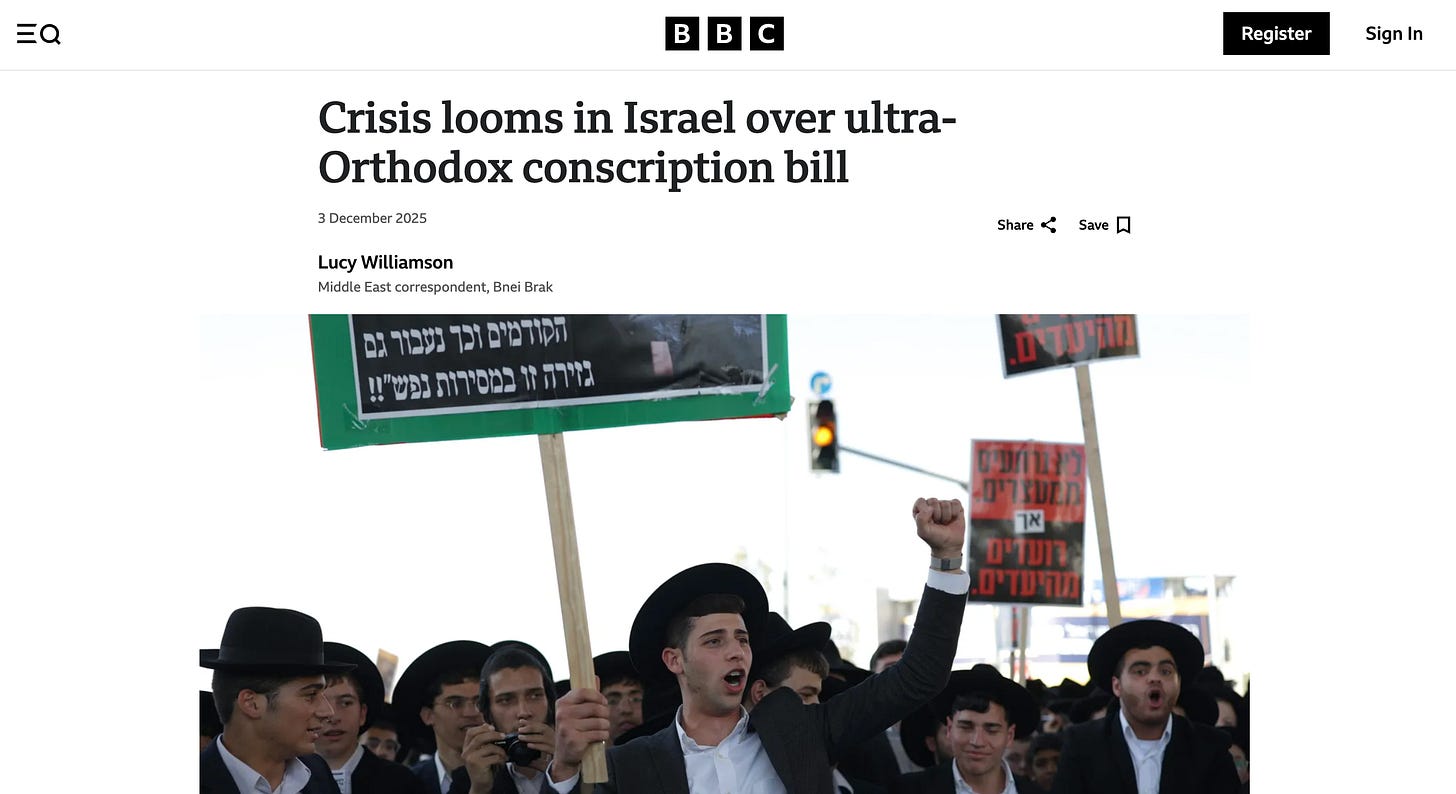 Meanwhile, the Israeli state is currently drafting the ultra-Orthodox into military service65 — the very population that would actually qualify under Laitman's definition. The secular state is in open conflict with its religious citizens.