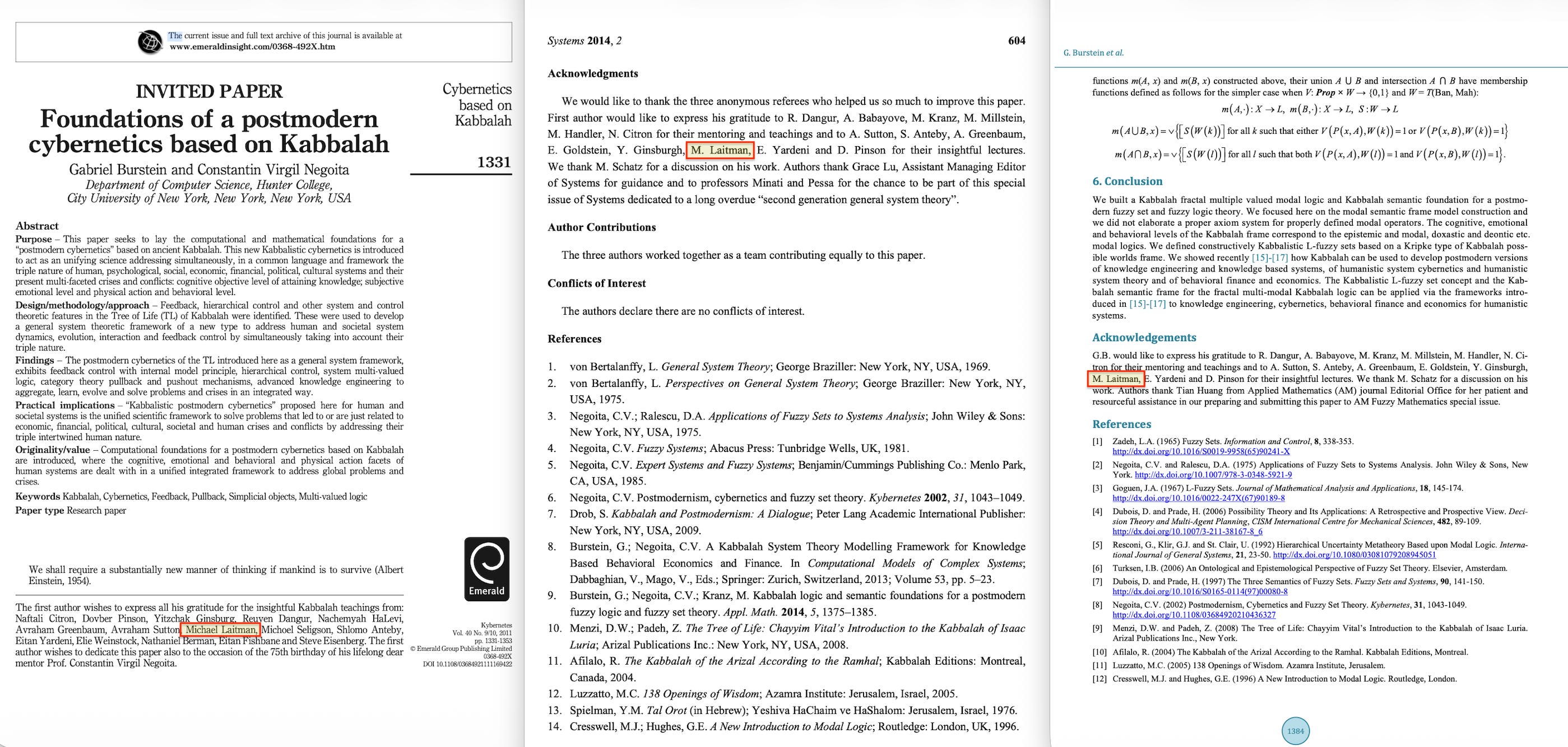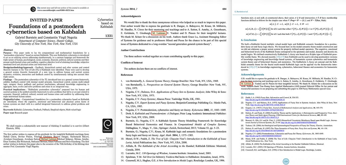 This is what Burstein and Negoita formalise — Laitman’s structure, rendered in systems theory and cybernetics, applied to economics, AI, and governance. They acknowledge him directly.