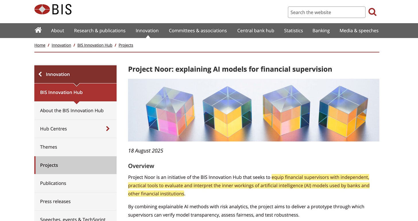 Project Noor23 addresses the interpretability problem. AI classification tools like Gaia produce outputs — risk scores, taxonomy alignments, compliance flags — but the reasoning behind those outputs is frequently opaque. When an algorithm makes a decision, regulators demand to know why. Noor develops explainable AI frameworks for supervisory decisions, so that a regulator can justify an adverse classification to the entity classified.