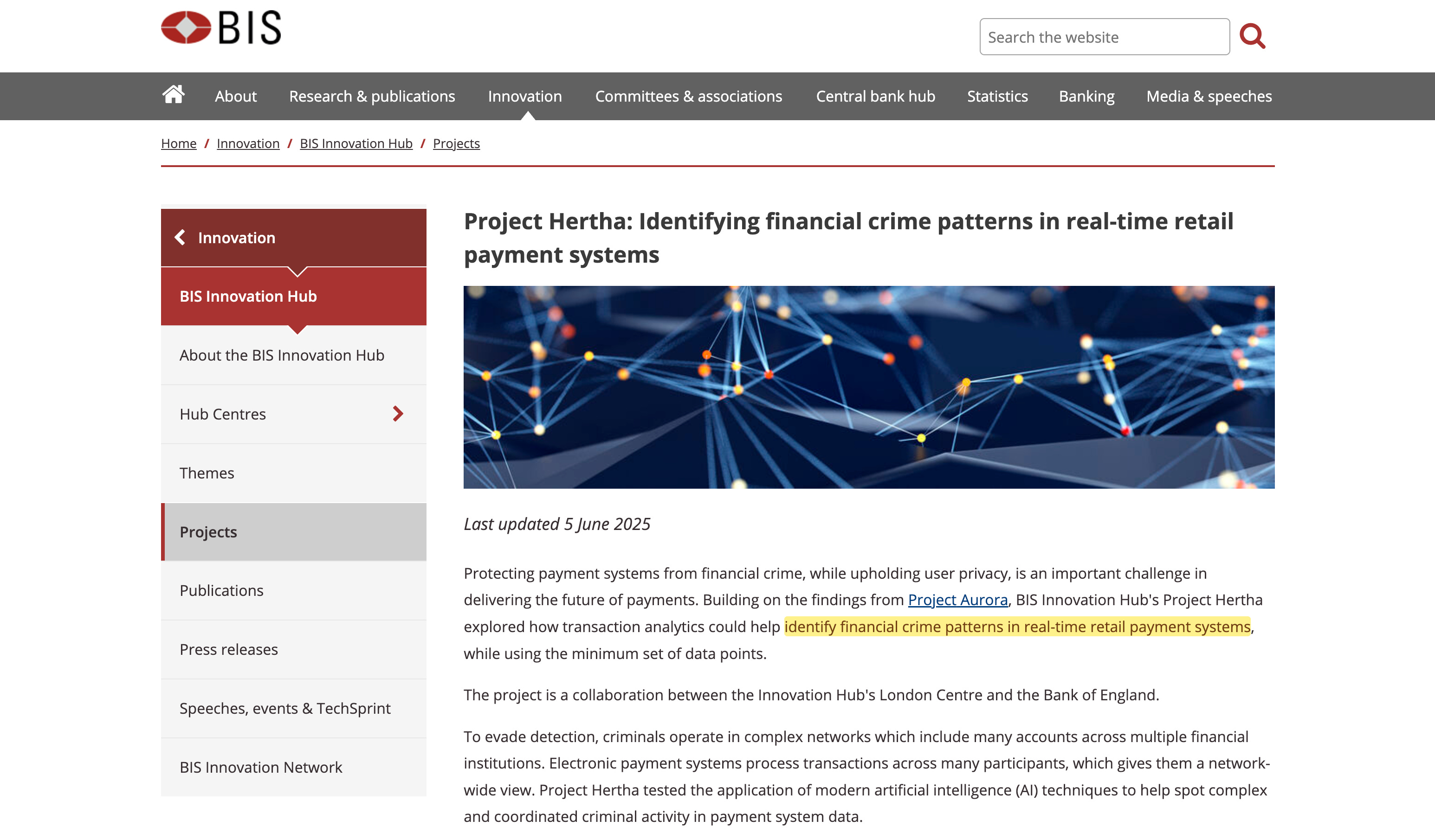 Project Hertha35 deploys network analytics to map financial crime patterns in payment systems.