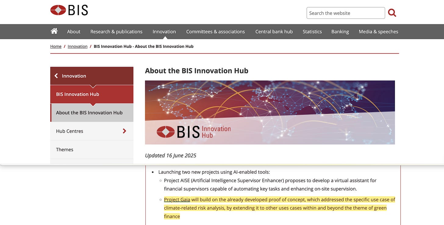 The companion essay described Project Gaia as the BIS’s AI tool for analysing climate-related financial risk, trained to assess corporate disclosures against the EU Taxonomy. Gaia was climate-specific by design — its training data, its classification criteria, and its outputs were all calibrated to environmental objectives. What has changed since is that the BIS itself has announced Gaia’s extension beyond climate. The 2025-26 work programme states that20: