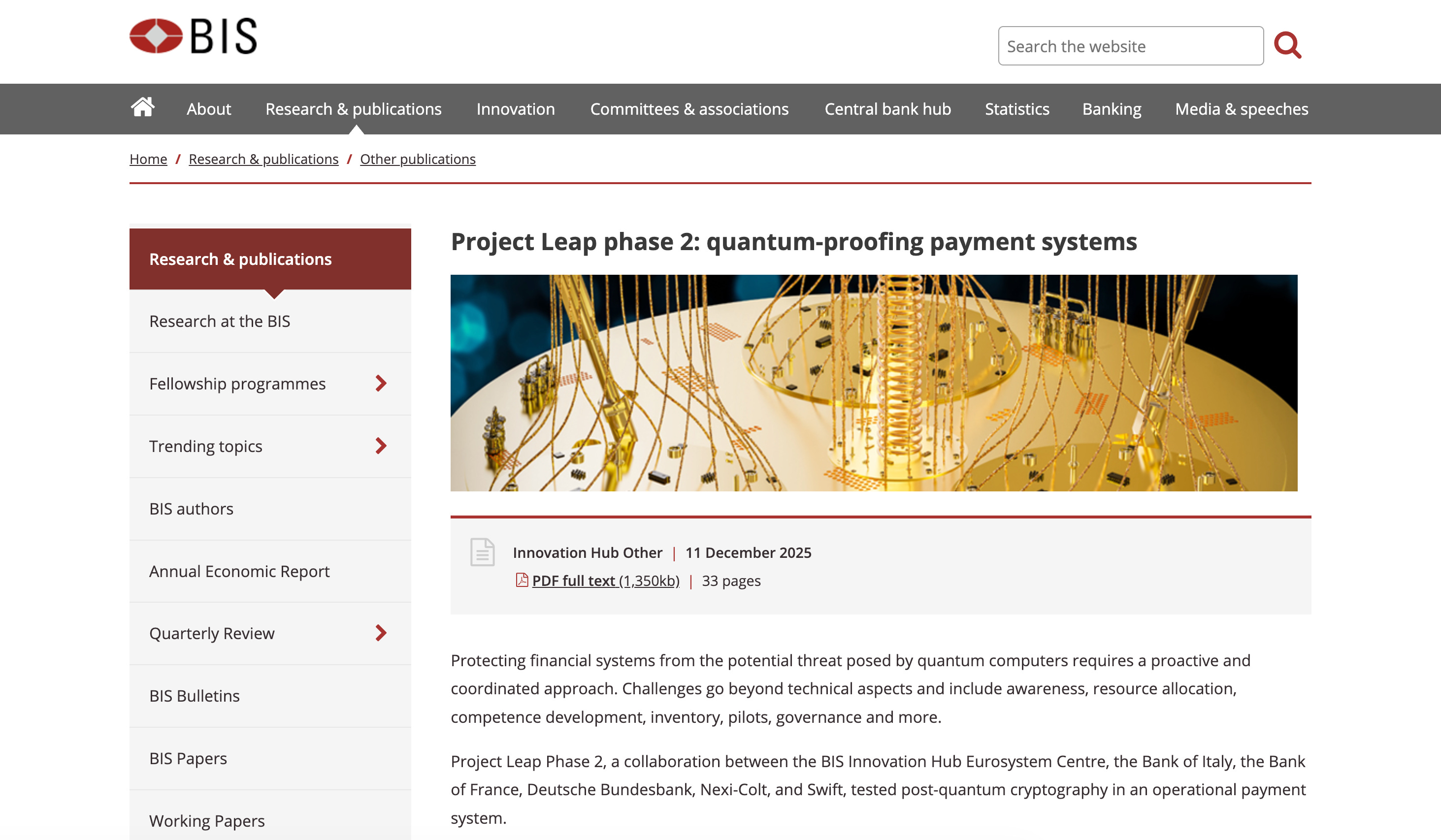 Project Leap32 (Phase II) addresses permanence. Having established a quantum-safe communication channel between the central banks of France and Germany in Phase I, Leap now demonstrates how payment systems can be protected from quantum computing — the one technology that could theoretically break the cryptographic foundations of the entire architecture.