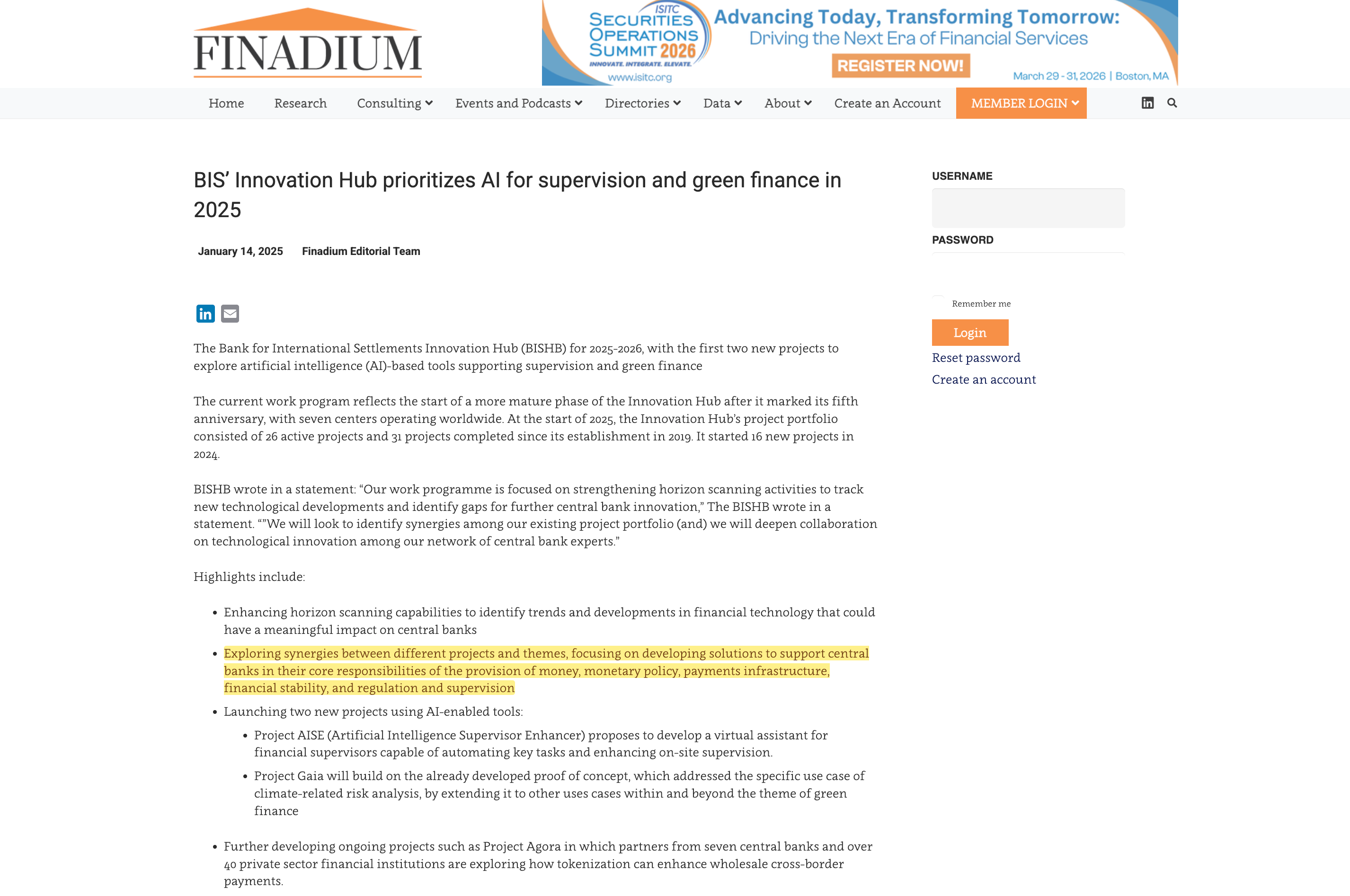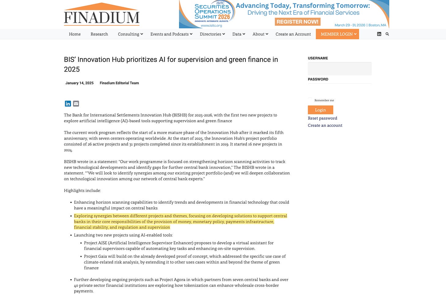 The BIS describes AISE as a response to the challenge of high staff turnover and the ‘ongoing need for training and adaptation to sophisticated market dynamics’ within supervisory institutions — embedding proven supervisory practices into an AI tool that any regulator can deploy against any regulatory objective22.
