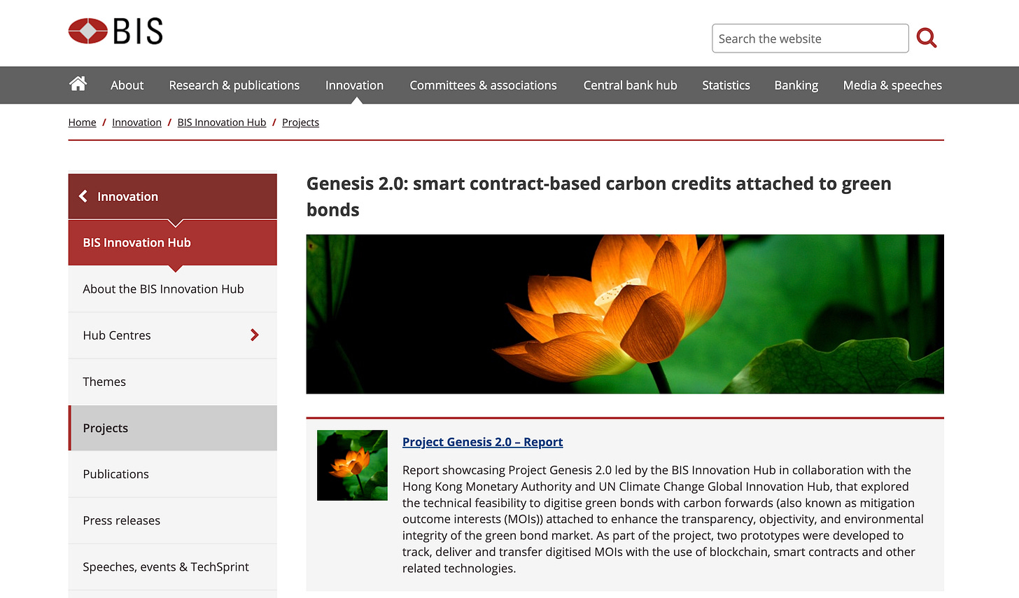 Project Genesis30 (presented at COP27) produced tokenised green bonds with real-time IoT-based environmental impact tracking and smart contract-based carbon credits attached directly to the bond instrument.