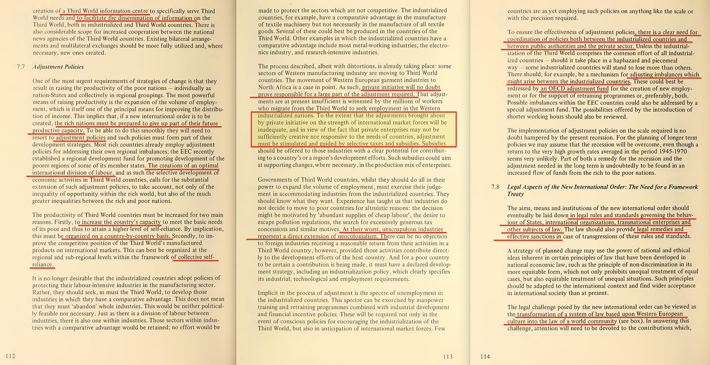 The report also includes an early gem titled Global Planning or Chaos, which kindly reminds us that the challenge isn’t just a North–South divide—but also East–West. And, naturally, the East must be included in our glorious future of global planning. In this context, the Trilateral Commission14 also gets a nod—because nothing says representative governance quite like a roundtable of unaccountable elites planning the future of the planet.