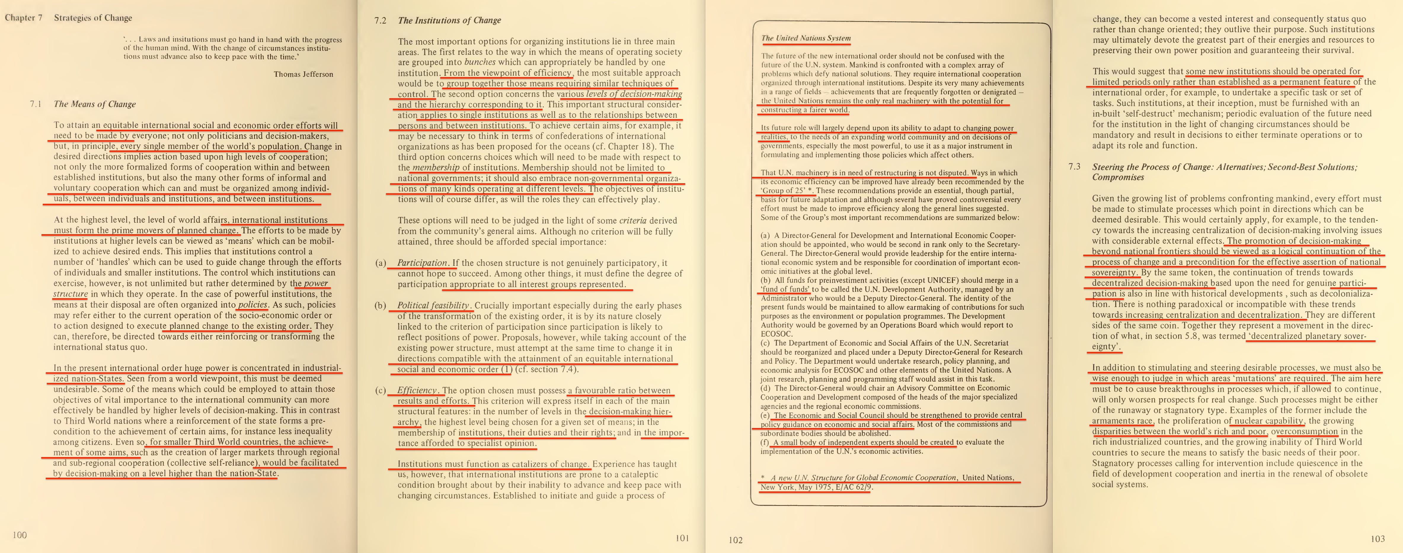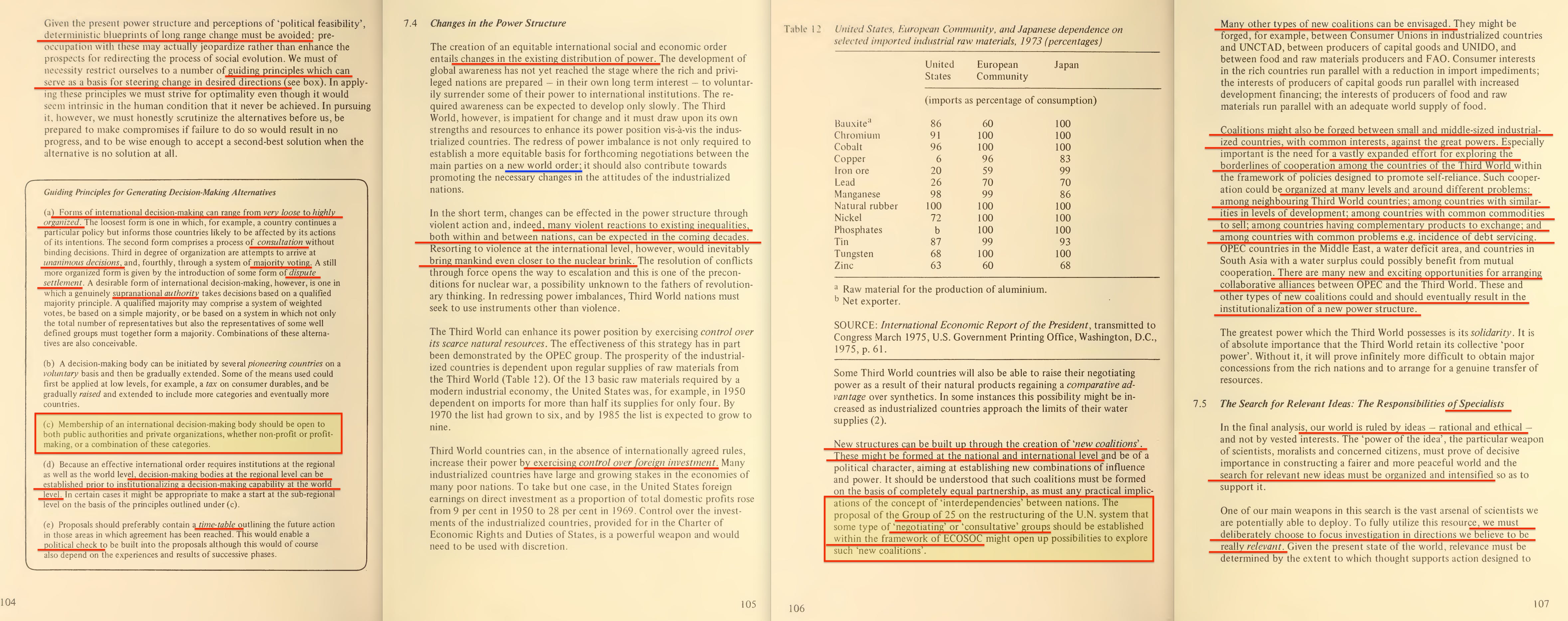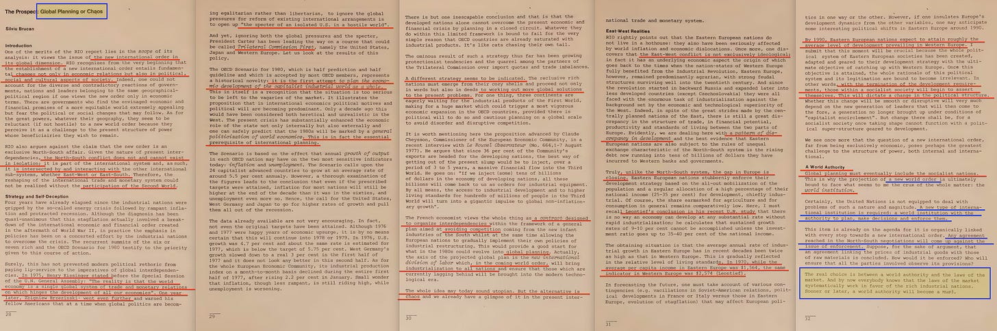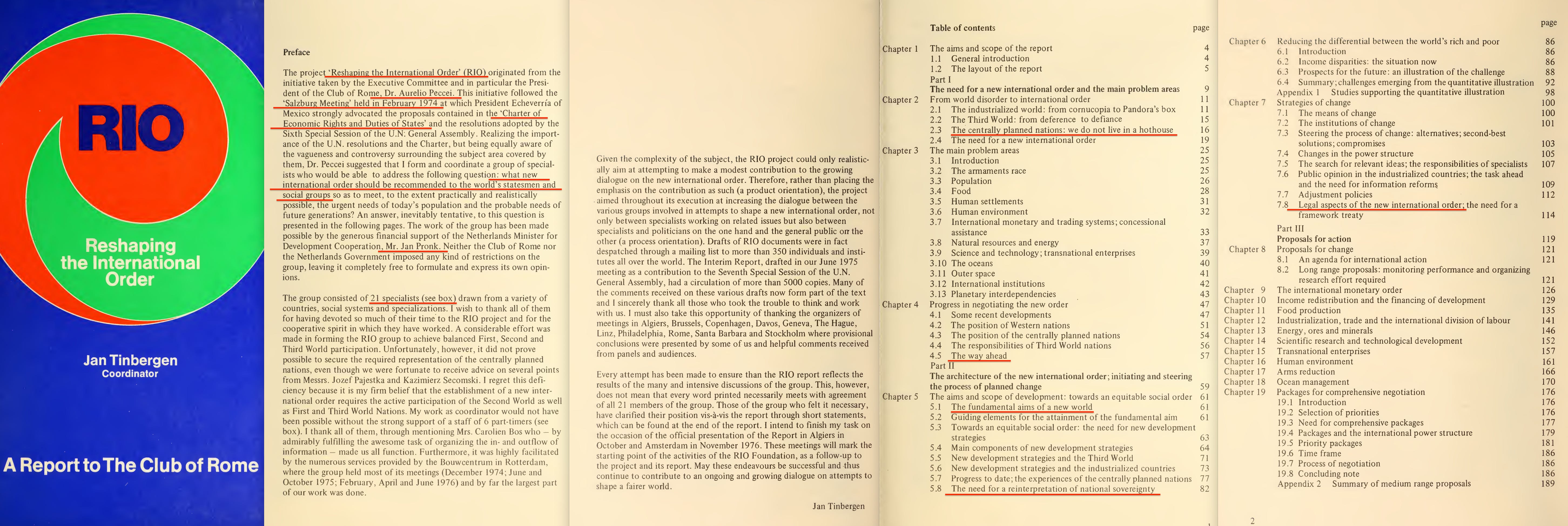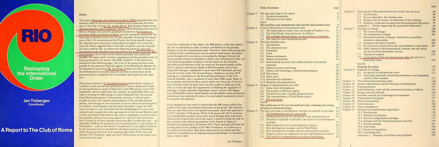 As for the first of the two documents, here is Reshaping the International Order4, published by the Club of Rome in 1976, with the associated conferences having begun in 1974.