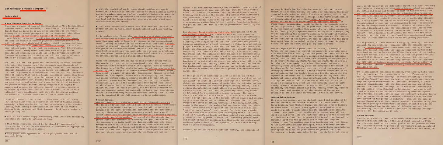 The North–South debate is covered in more detail in arguably the most boring chapter of the lot. But I can’t help dragging it in—explicitly because it’s penned by none other than Barbara ‘Spaceship Earth’ Ward. Yes, the same Barbara Ward who co-authored Only One Earth12 with Rockefeller’s René Dubos13 in 1972, before joining the Conservation Foundation in 1976—whose impeccably detailed 1980 report on monetising air is, frankly, rather telling.