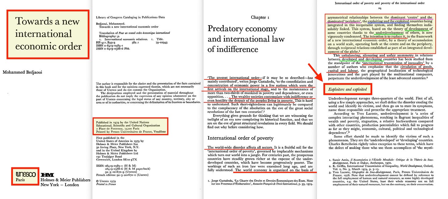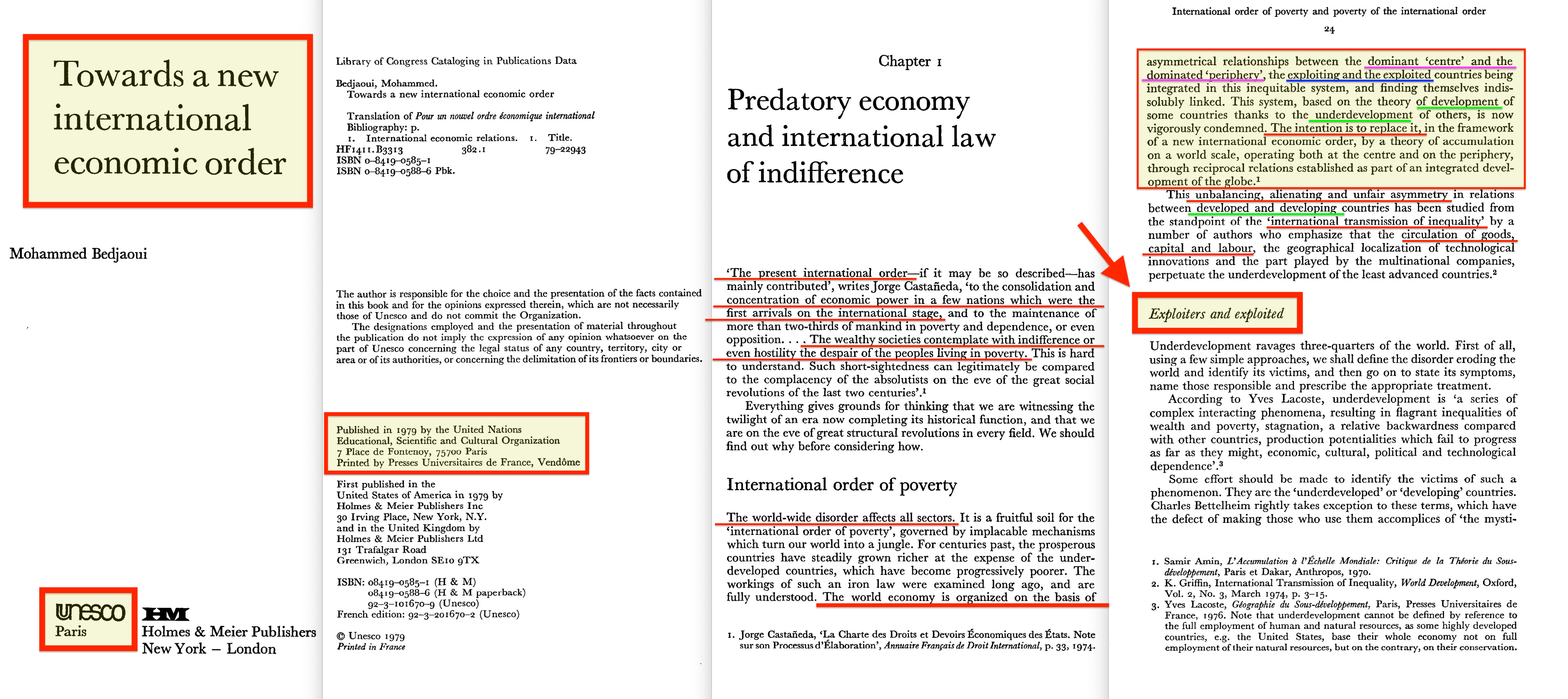 Towards a New International Economic Order by Mohammed Bedjaoui, published by UNESCO in 1979, wastes no time establishing the framework: exploiter versus exploited1.