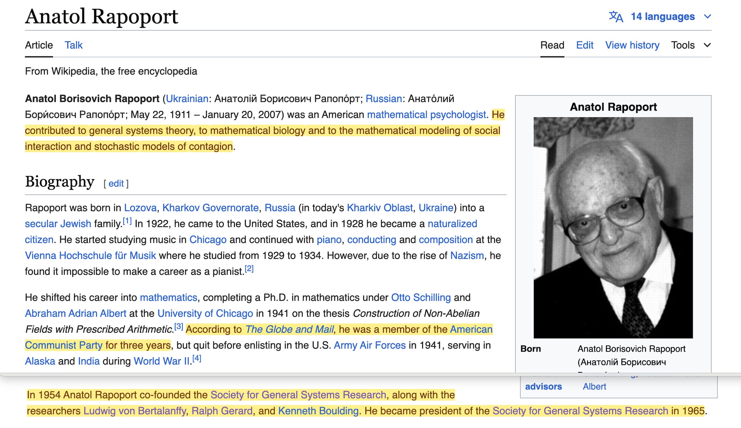 … even if that isn’t much of a surprise, given that Rapoport was a founding member of the Society for the Advancement of General Systems Theory7, as it so happens8. Oh yeah, and he was also a member of the American Communist Party.