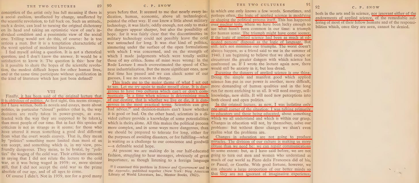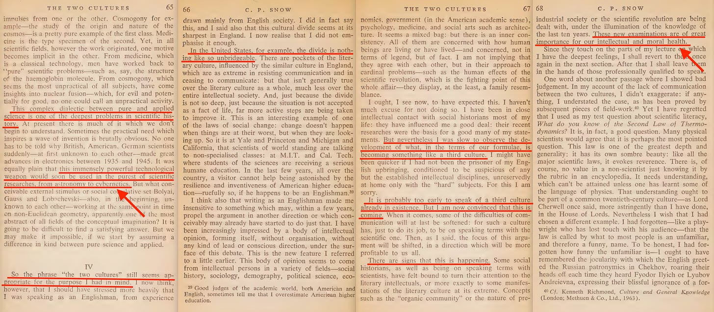 I won’t bother with the rest of the paper, because while he dances around the issue, he doesn’t outline a solution. No - that was to come in 1963, when he released an updated version; The Two Cultures and a Second Look3.