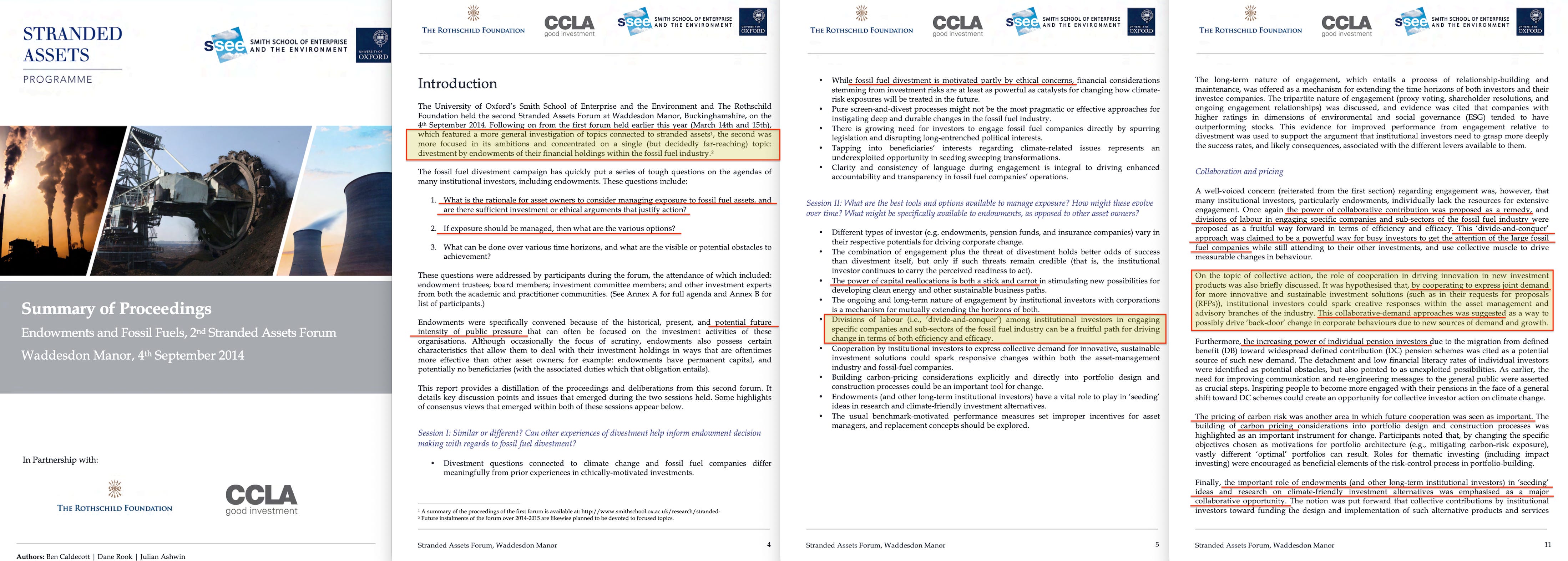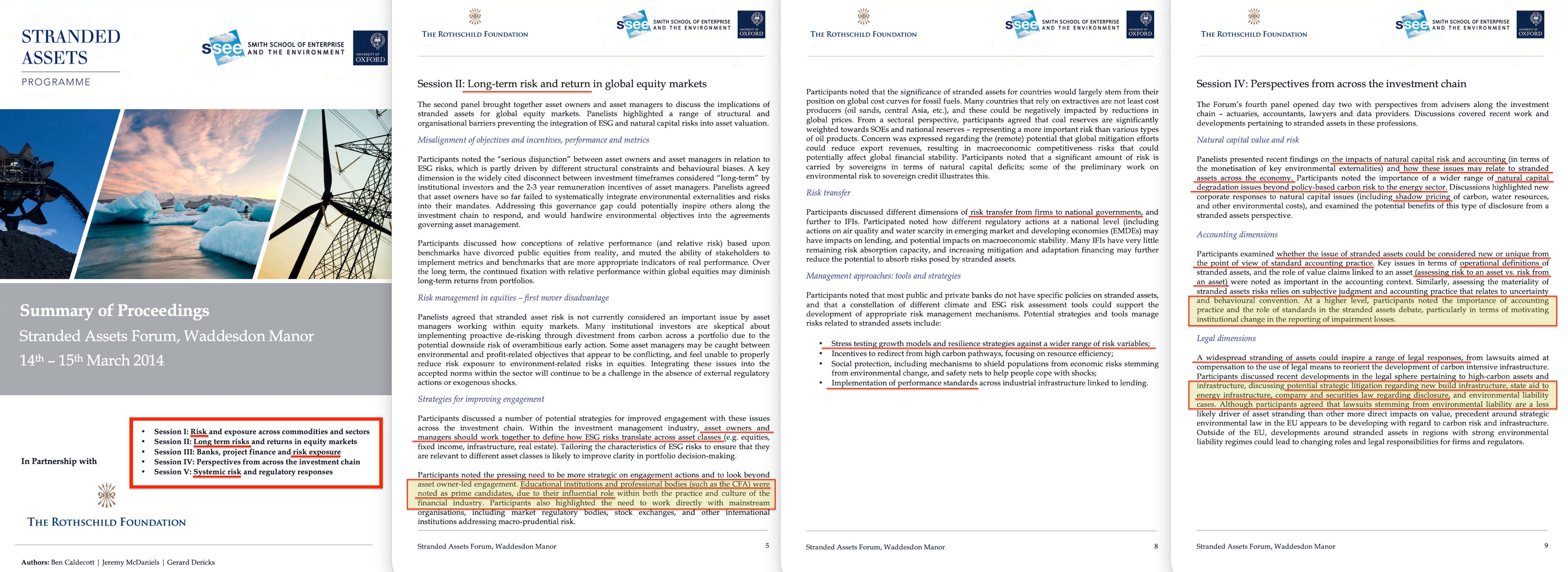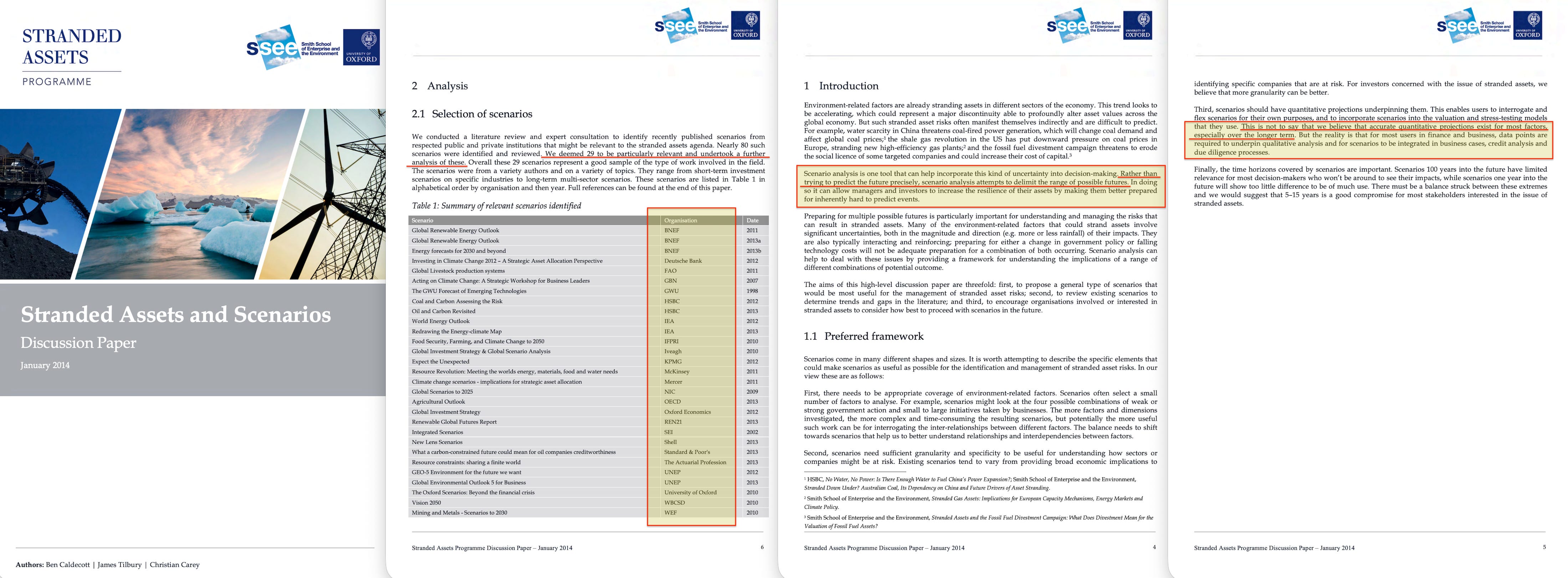 In January 2014, the Oxford Smith School’s Stranded Assets Programme published ‘Stranded Assets and Scenarios’18, a 21-page paper funded by the Rothschild Foundation, the Generation Foundation, HSBC, and WWF-UK.