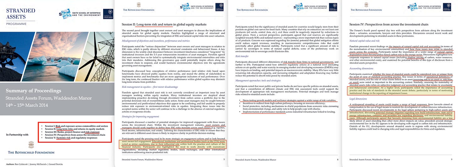The forum stated plainly: ‘The power of capital reallocations is both a stick and carrot’. The carrot is access to capital for compliant assets, while the stick is capital withdrawal from non-compliant ones. No legislation required — just coordinated reallocation by institutions large enough to move markets ‘for the common good’, with climate change serving as reasoning in this instance.