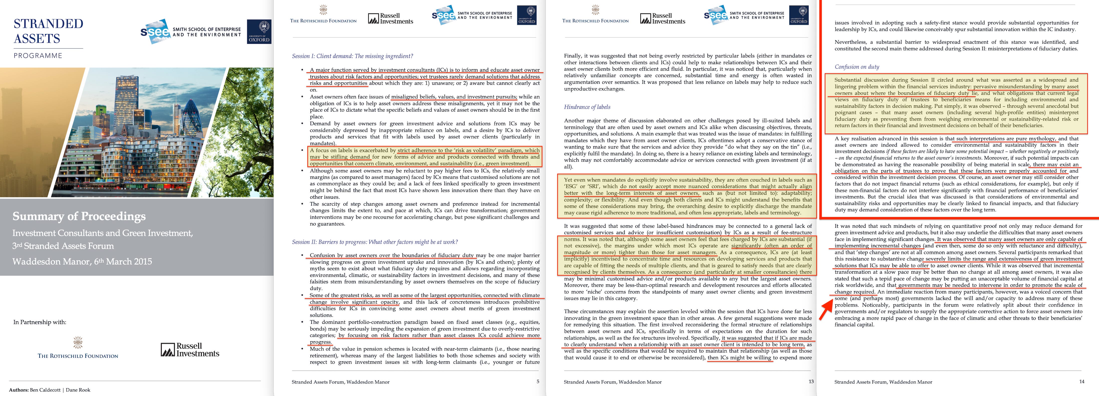 The subsequent working paper, published August 2015, made the threat explicit. Titled ‘Investment consultants and green investment: Risking stranded advice?’24, it warned: