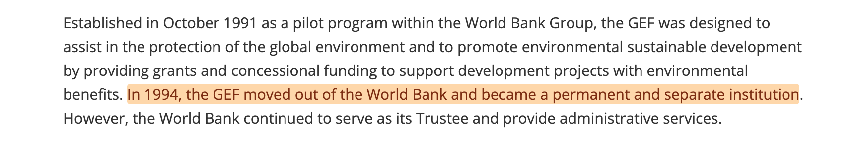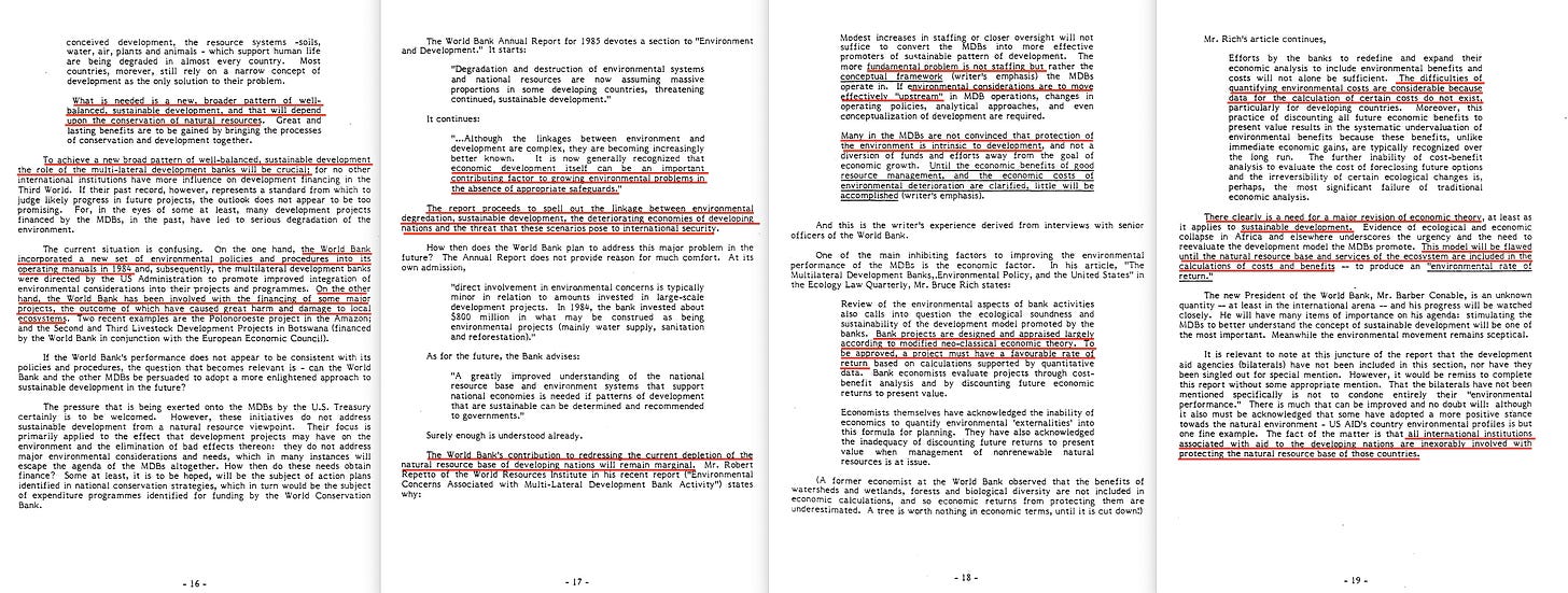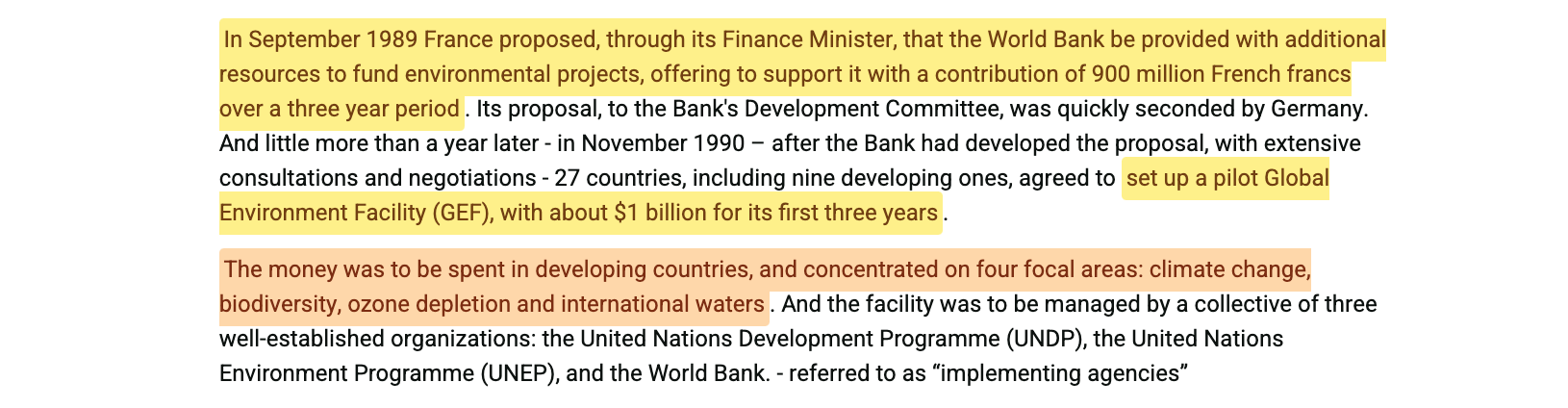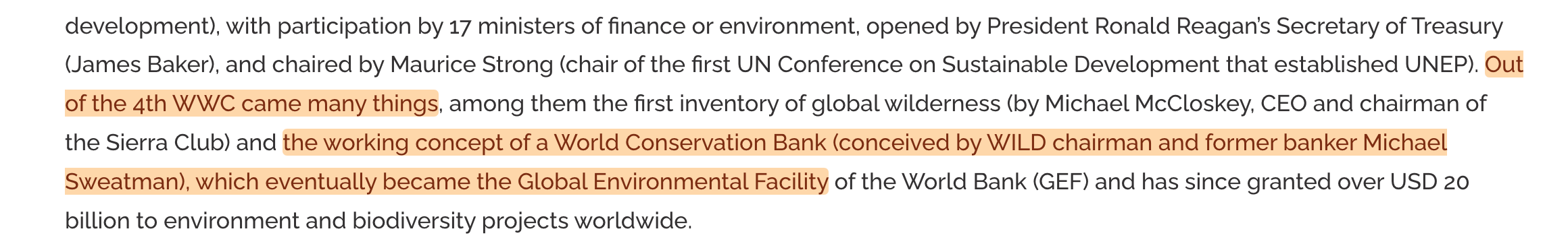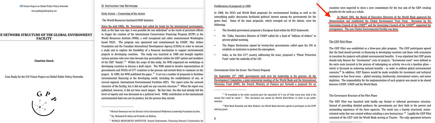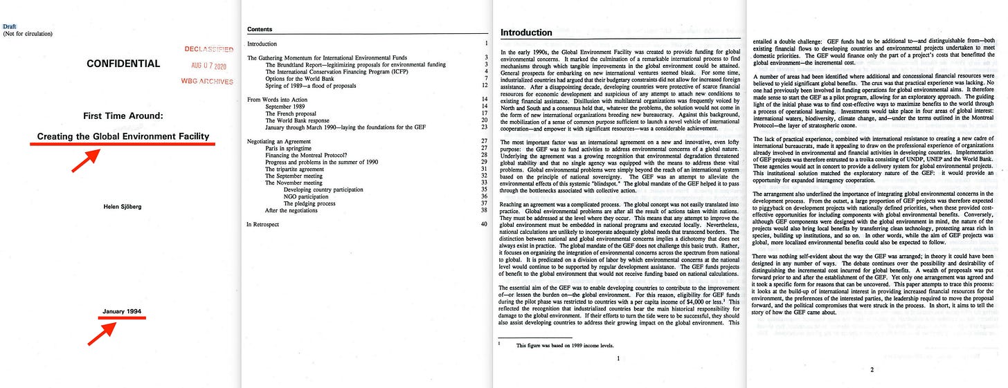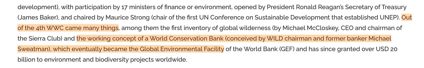 Ultimately - the World Conservation Bank came to pass in the form of the Global Environment Facility. Consider that firmly documented - though should you wish to dive even deeper, the World Bank declassified an internal document on the matter just a few years back17.