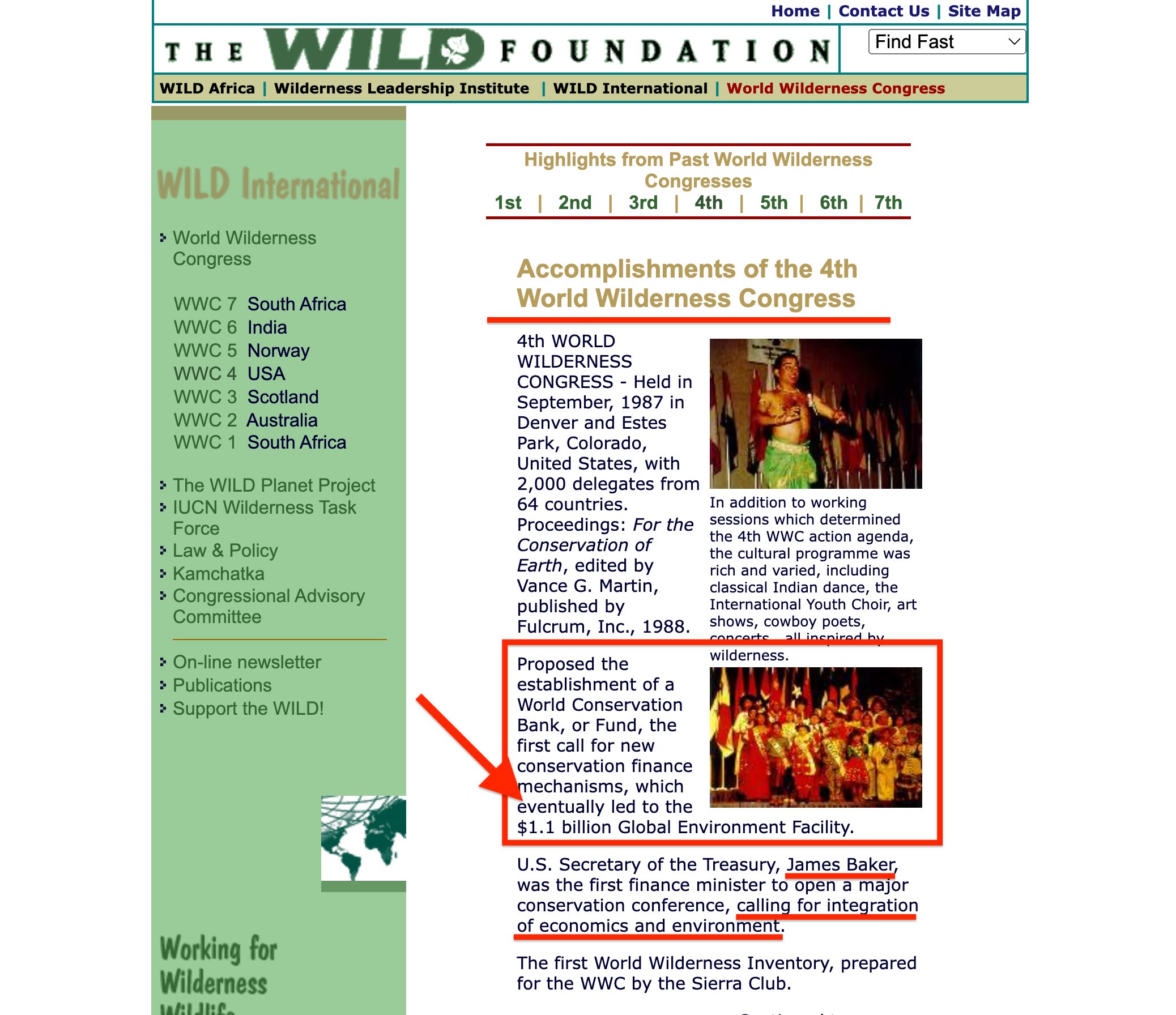 Which, needless to say, should set of an alarm bell. The World Conservation Services is then briefly outlined, but they’re… not really terribly important, given they practically were allocated the least amount of space in this document. Finally, implementation is discussed, and the need for a ‘mini conference’, which I’m sure should delight those private interests ‘with substantial influence’. And in terms of conferences, the 4th World Wilderness Congress is highlighted, on the agenda of which the World Conservation Bank and Service are both expected.