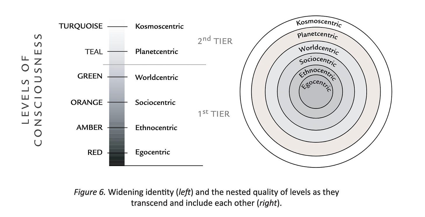 Alice Bailey provided the psychological infrastructure that would make populations receptive to institutional coordination and philosophical justification. Her concept of the 'New Group of World Servers' described networks operating simultaneously through government, religion, and education — not as separate influences, but as a coordinated conditioning apparatus — Boulding’s Invisible College, perhaps — designed to reshape human consciousness at the foundational level, in a way not dissimilar to that later witnessed through Ken Wilber’s writings on spheres of consciousness6, while embracing the ‘love’ Swidler explains is fundamentally about consciousness expansion and ‘interdependence’ — ie, collectivism.