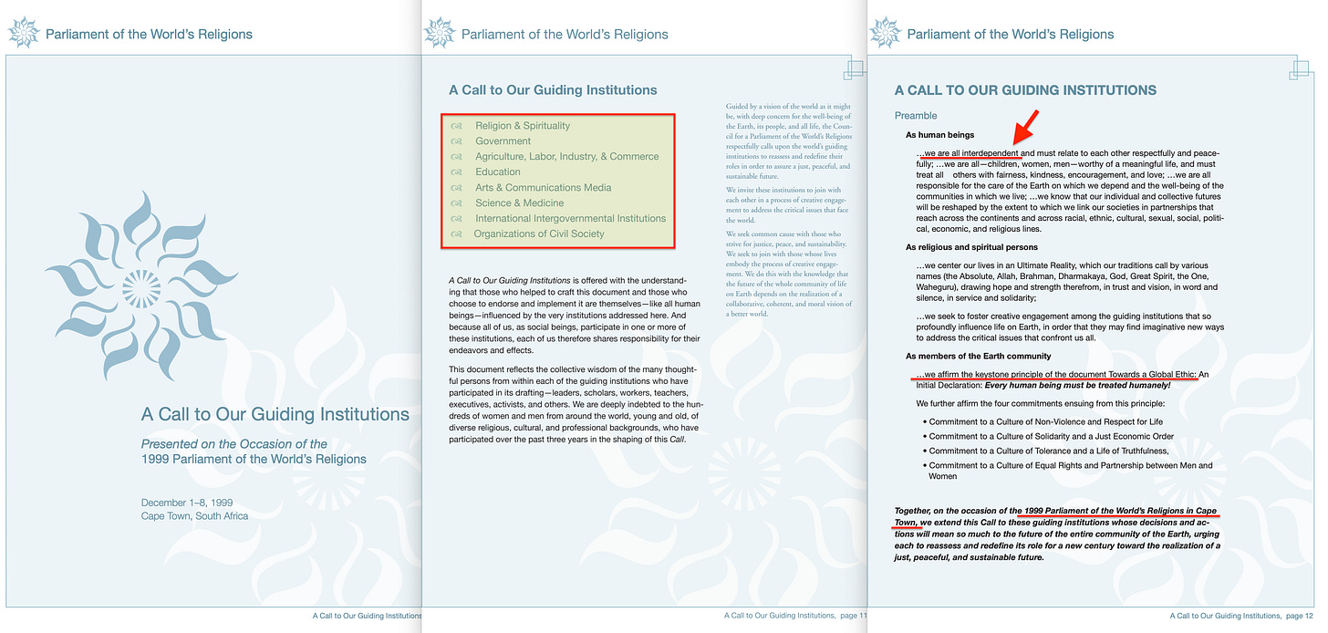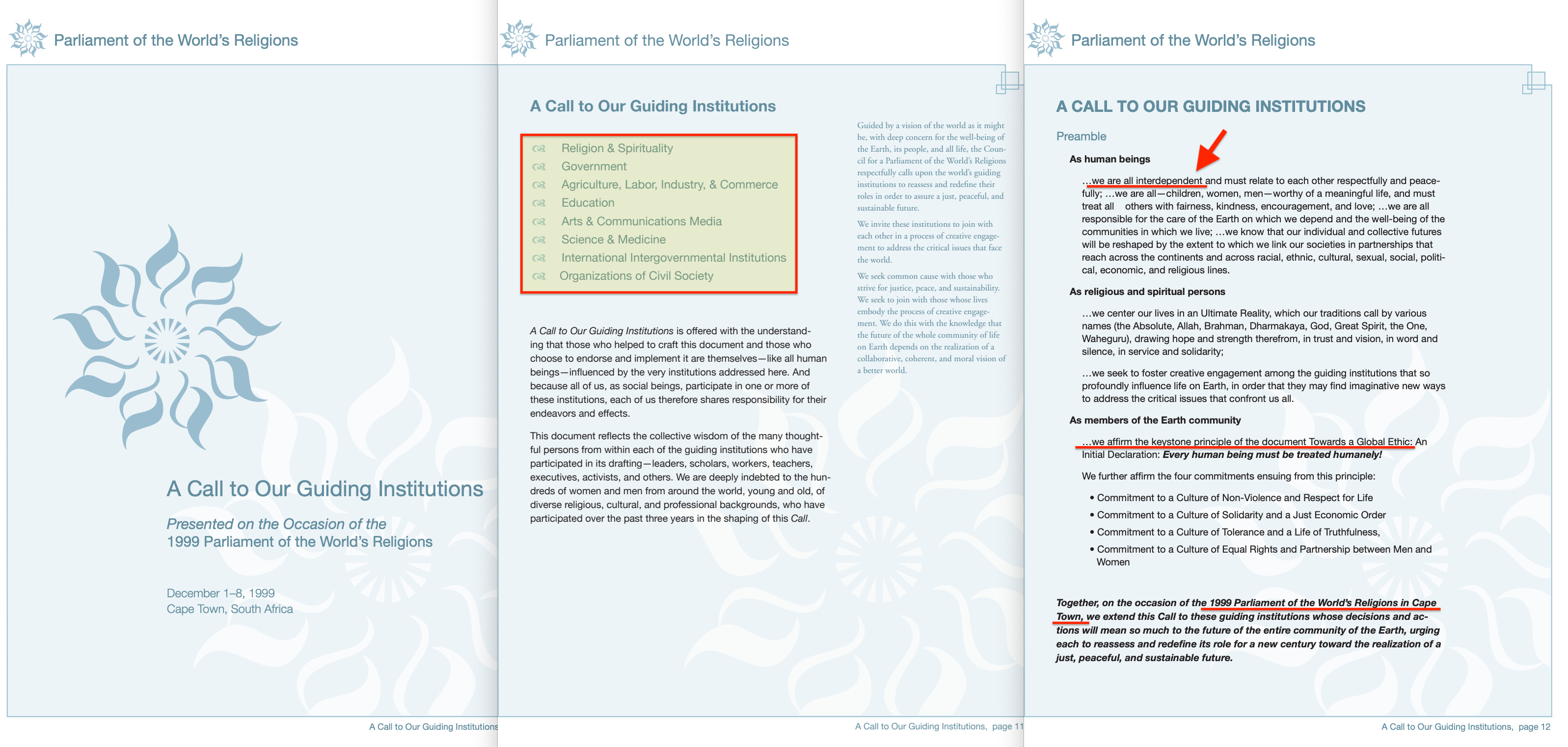Leonard Swidler later elevated ‘interdependence’ to the status of first principle in his ‘cosmo-anthropo-centric’ global ethic3 published in 1995, thereby supplying the philosophical justification that collective governance is an inevitable necessity. On this foundation, Küng called upon every major sector to embrace the shared Global Ethic he had launched at the 1993 Parliament of the World’s Religions4.