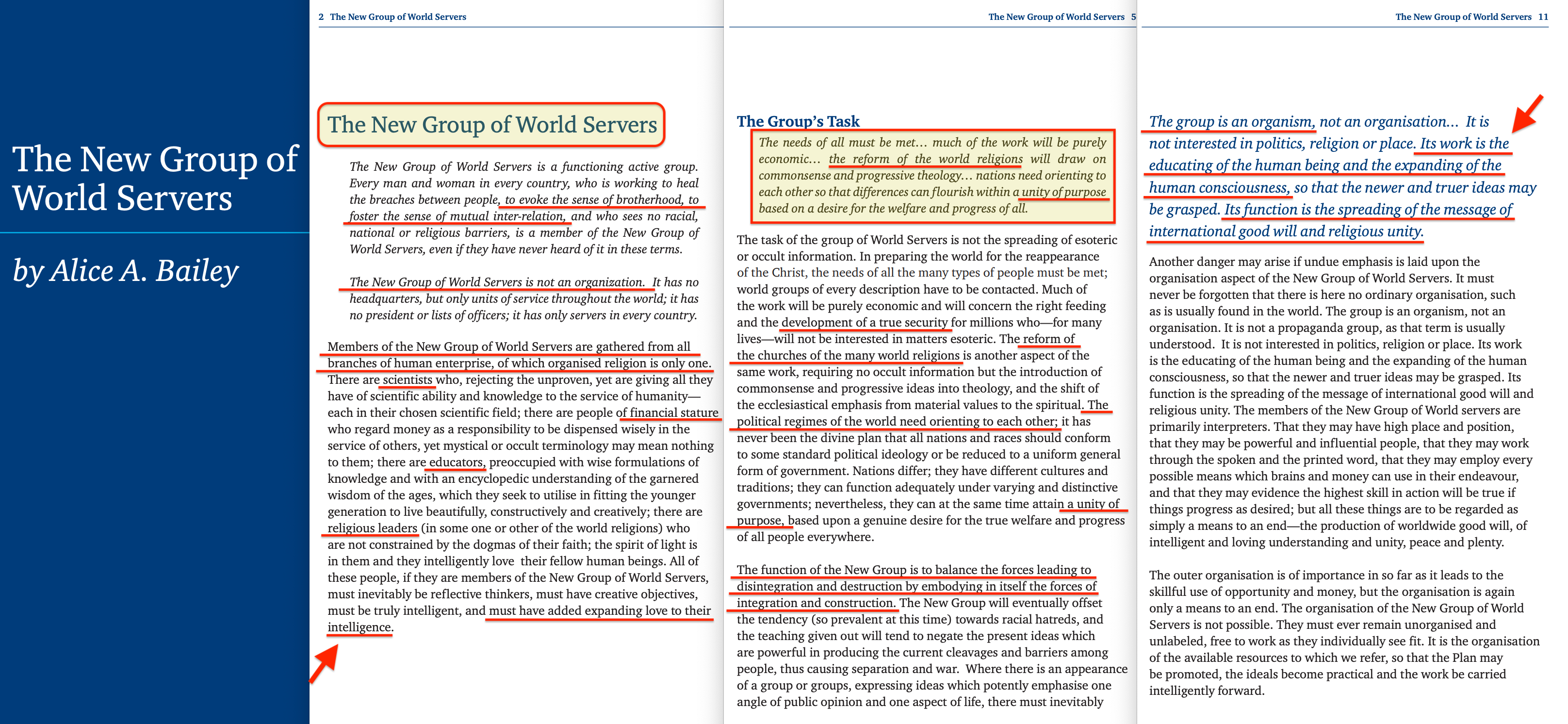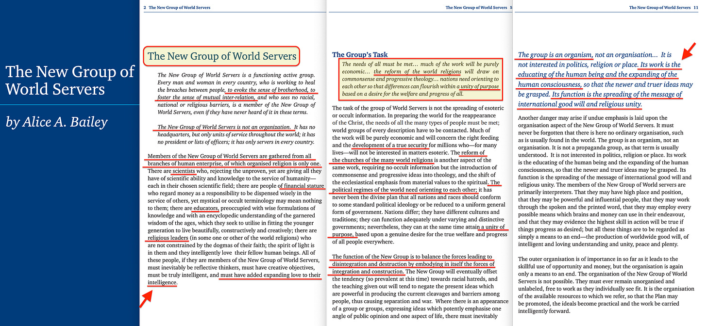 Around the same time, Alice Bailey described a ‘New Group of World Servers’2 operating through government, religion, and education — an architecture for shaping public consciousness and softening resistance to systemic transformation.